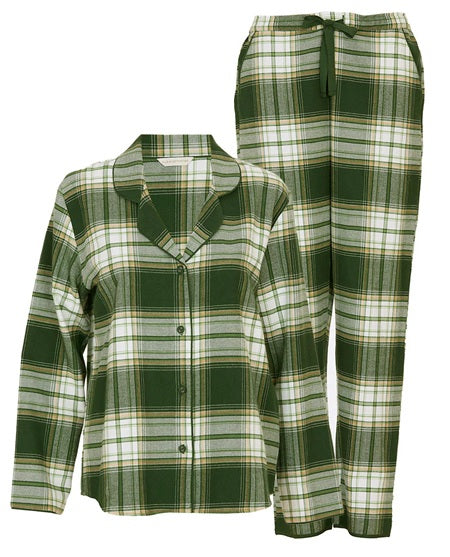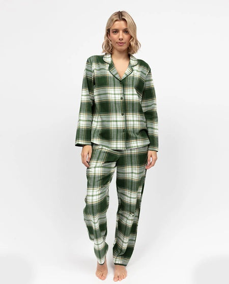With all the finer details of the winter months surrounding us, unwinding in the familiar, classic pattern of our Fern Women’s Olive Green Mix Brushed Check Long Sleeve Pyjama Set gives us something to savour as time seems to suspend itself.