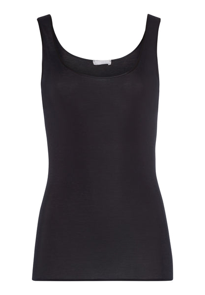 The HANRO Cotton Seamless Tank Top is a basic from HANRO; the best Cotton Seamless ever. Featuring seamless sides, hemless bottom and tailored from 100% cotton softened using an innovative new mercerization technique. This stylish and modern women's tank features a satin trimmed scoop neckline and straps for easy layering, plus the versatility to wear as a stylish top.