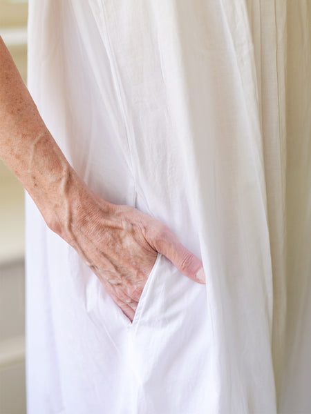 Drift away in pure cotton, detailed with petite pleats, crochet insets, eyelet trims, soft gathers and side pockets because you might just stay in this all day!